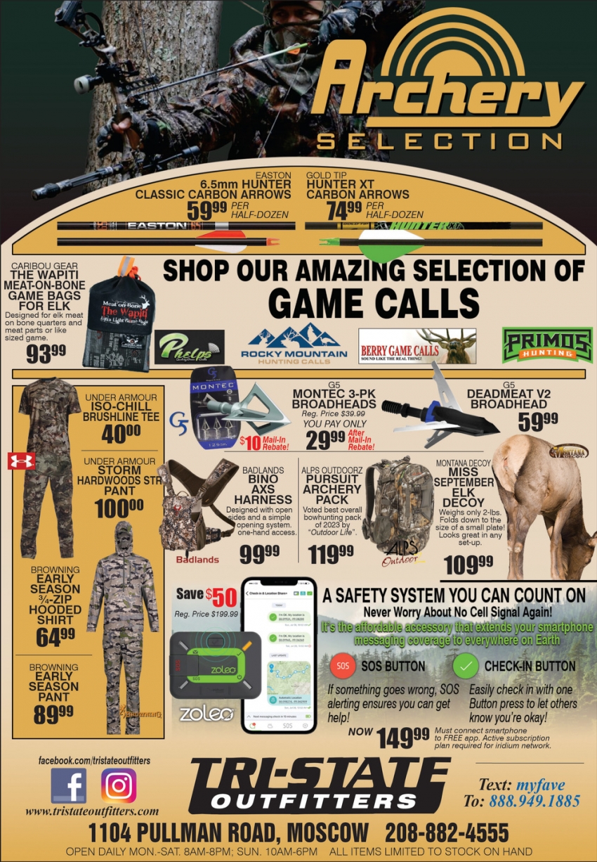 Aug 22, 2024. Tri-State Outfitters Sporting Goods Ads from Moscow-Pullman Daily News