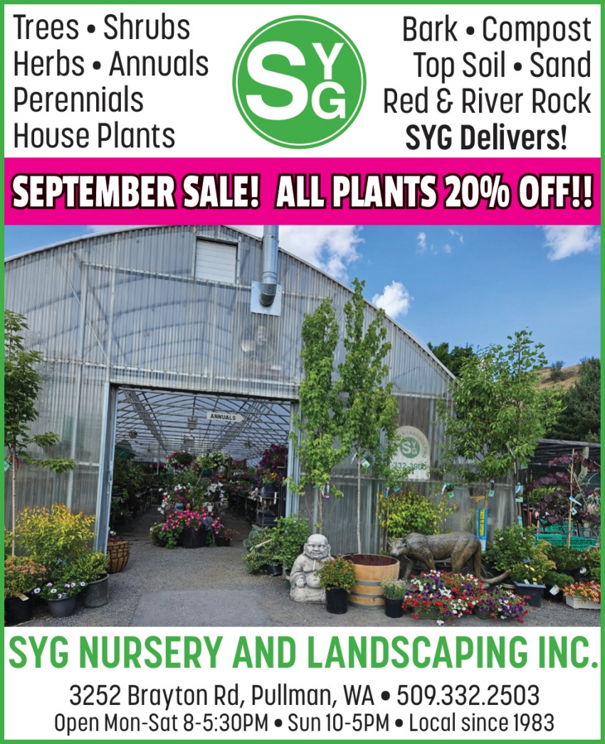 Aug 31, 2024. SYG Nursery and Landscaping, Inc Home & Garden Ads from Moscow-Pullman Daily News