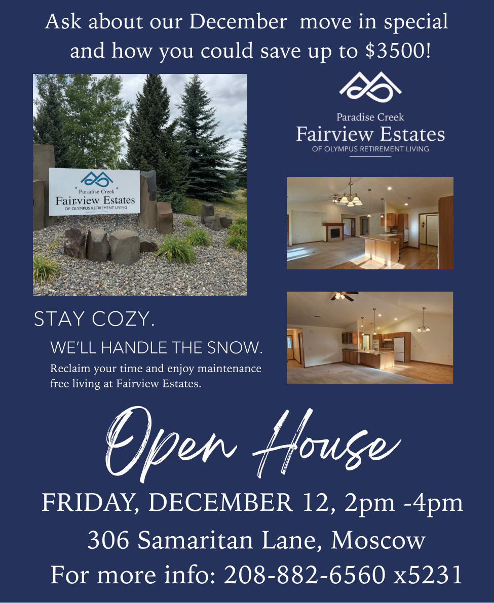 Dec 11, 2025. Paradise Creek - Fairview Estates of Olympus Retirement Living Events Ads from Moscow-Pullman Daily News