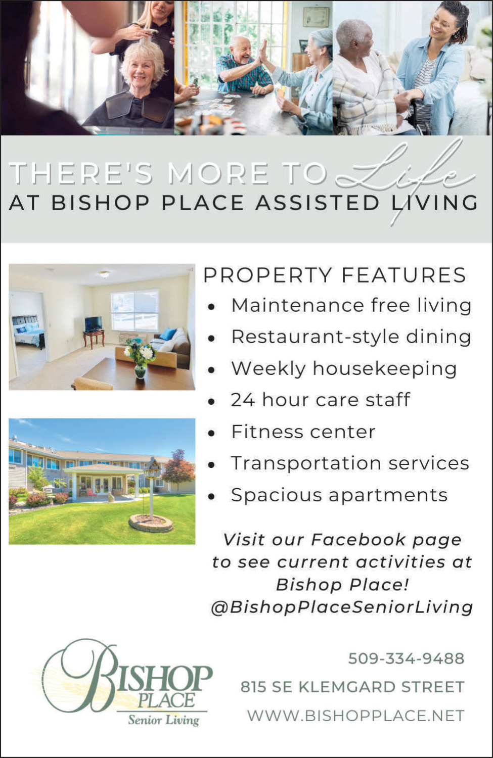 Jan 01, 2026. Bishop Place Senior Living Senior Living Ads from Moscow-Pullman Daily News
