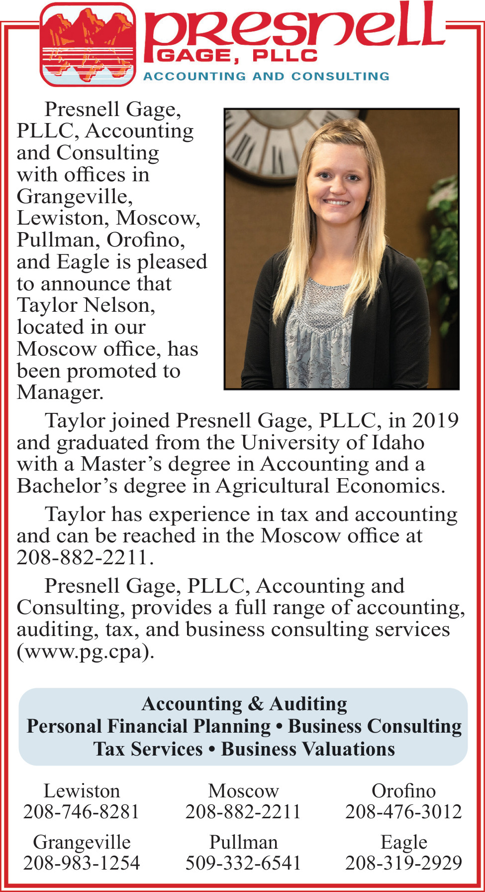 Jan 03, 2026. Presnell Gage, PLLC Financial Ads from Moscow-Pullman Daily News