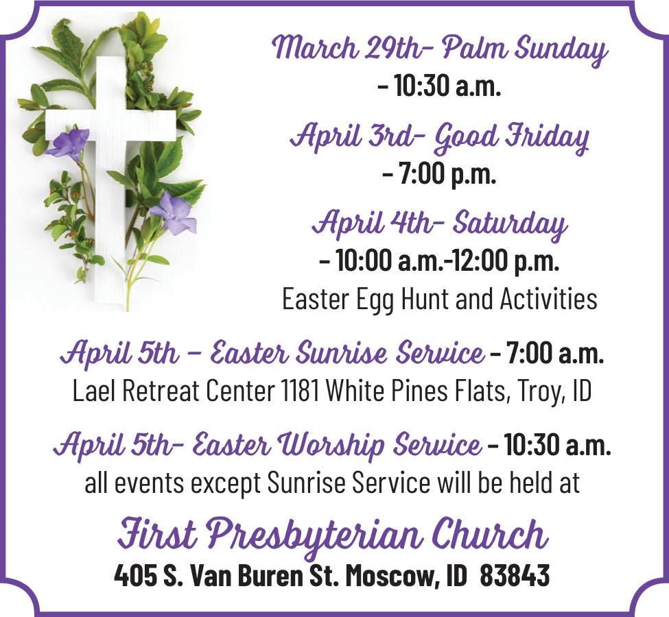 Apr 04, 2026. First Presbyterian Church Church Ads from Moscow-Pullman Daily News